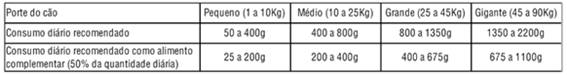 O consumo diário depende da idade, o porte e o ambiente do seu pet.