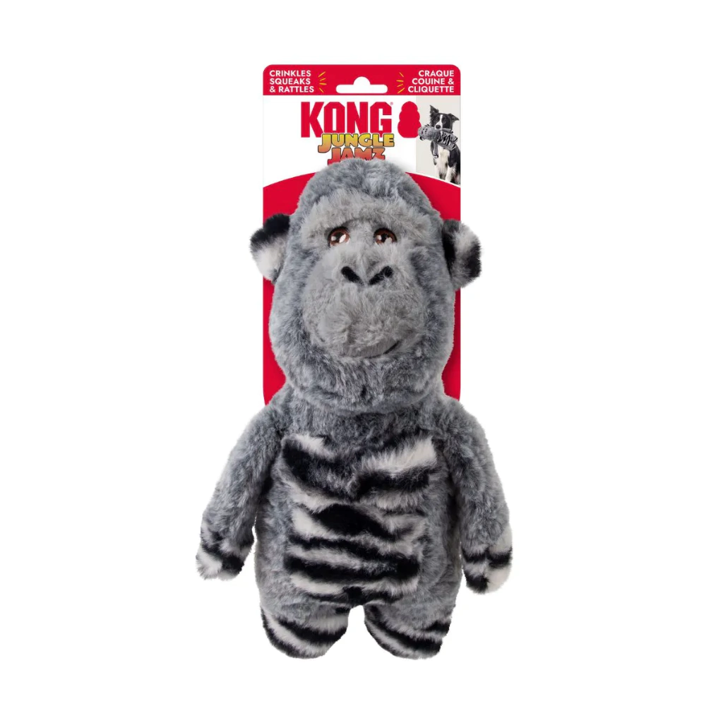 O KONG Jungle Jamz Gorilla é um brinquedo divertido e resistente, feito especialmente para cães que adoram sacudir, morder e explorar novas texturas. Seu formato de gorila chama atenção e desperta o instinto natural de caça, enquanto o squeaker interno e o material que amassa tornam a brincadeira ainda mais empolgante.