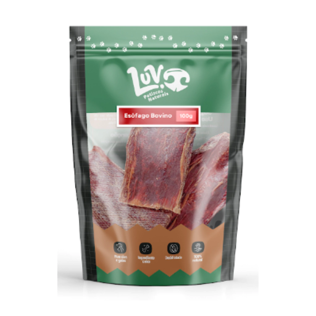 Contém 100g de Esôfago Bovino desidratado lentamente em baixa temperatura.