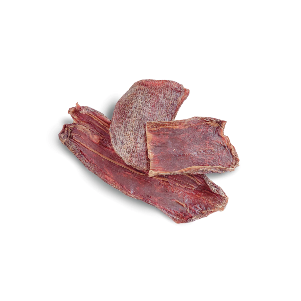 Alimento de alto valor agregado, pode ser oferecido como recompensas positivas para enriquecimento ambiental, é um mastigável desidratado ótimo para auxilio e prevenção de tártaro.